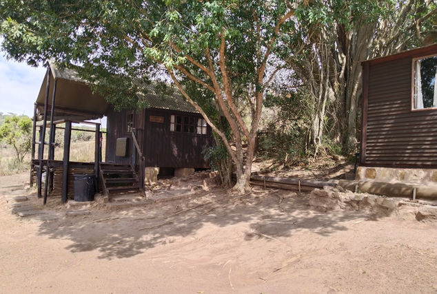 One outdoor shower, a flushable loo, no electricity & hot water through a wood-burner geyser. Perfect for smaller groups wanting that real "sit by the campfire and listen to Nightjars" experience.